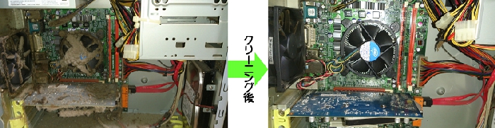 パソコン内部は掃除機のようにホコリがたまりますので定期的な清掃が必要です。